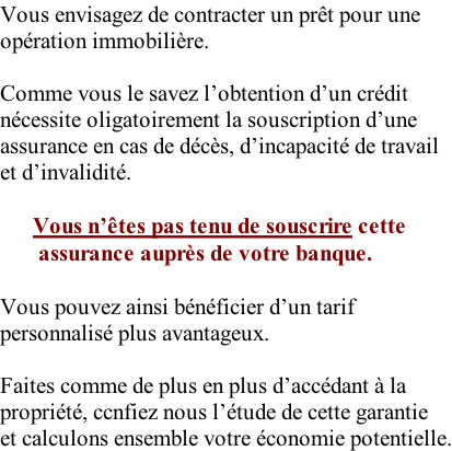 Réduisez vos mensualités en nous  confiant votre assurance de prêt. Nous contacter retour page suivante Novità Emprunteur,  l’assurance de prêt de GENERALI Pour plus d’information